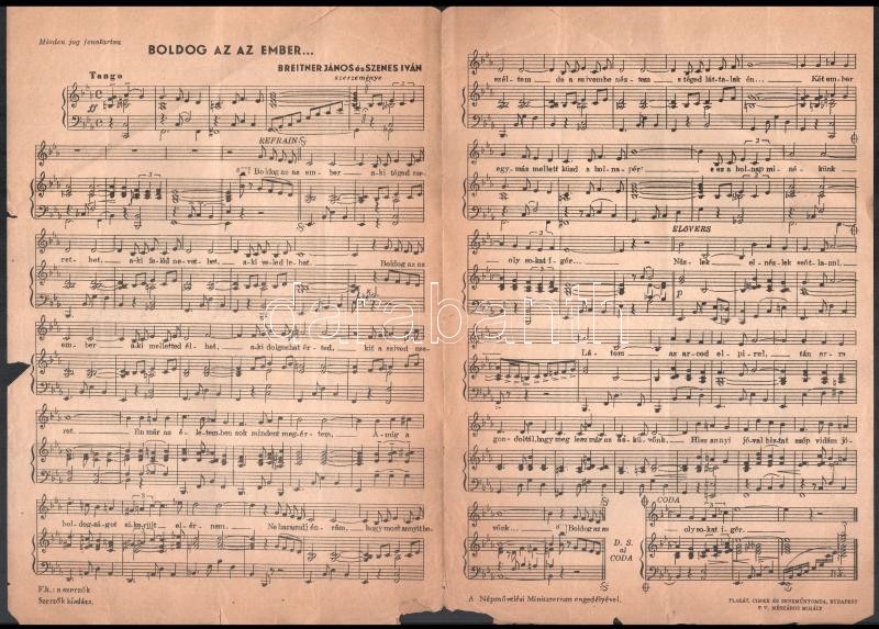 Boldog az az ember, tangódal, Breitner János és Szenes Iván szerzeménye, szakadásokkal