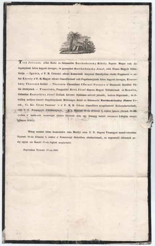 1841 Sopron, rátki és salamonfai Barthodeiszky János (1756-1841) cs. é... https://www.darabanth.com/en/403-Online-auction/403.0/Art-and-other-collectibles/Printed-Materials~500028/1841-Sopron-ratki-es-salamonfai-Barthodeiszky-Janos-1756-1841-cs-es-kir-udvari-tanacsos-gy~II2481467
