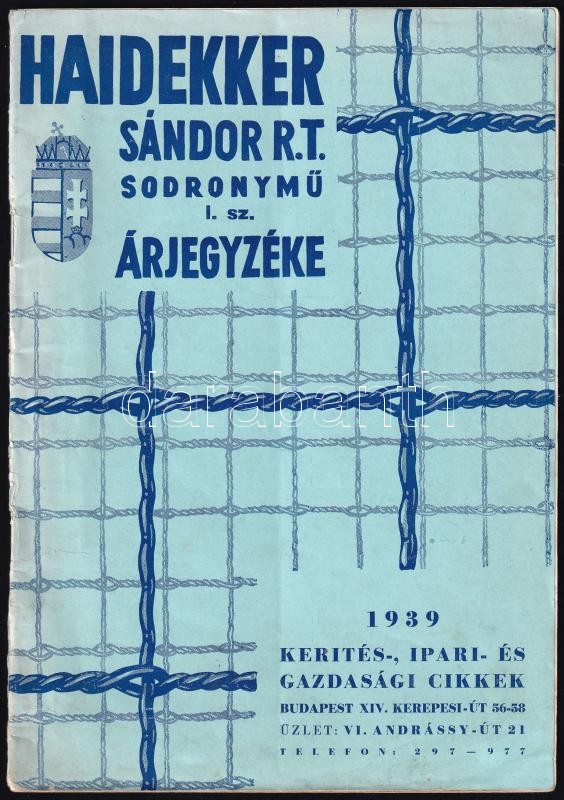 https://www.darabanth.com/en/403-Online-auction/403.0/Art-and-other-collectibles/Printed-Materials~500028/1939-Haidekker-Sandor-Rt-Budapest-Sodronymu-kerites-es-egyeb-ipari-hasznalati-cikkek-rajzos~II2481865