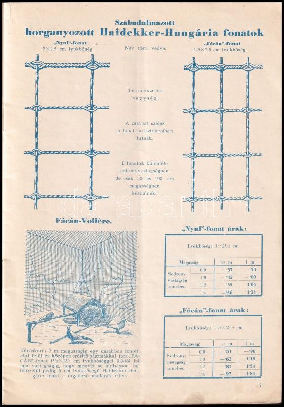 1939 Haidekker Sándor Rt. Budapest Sodronymű kerítés és egyéb ipari, h...