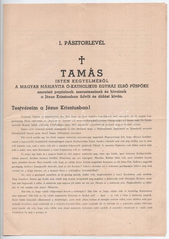 1945 Bp., A Márivita Ó-Katholikus Egyház pásztorlevele, rajta Fehérvár...