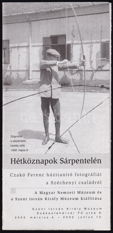 Description: 2005 Hétköznapok Sárpentelén, Czakó Ferenc házitanító fotográfiai a Széchényi családról. Kiállítási prospektus, rajta fekete-fehér fotókkal, köztük Széchényi Zsigmond fotójával, Székesfehérvár, Szent István Király Múzeum-MNM.