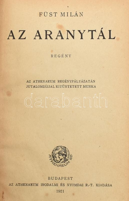 https://www.darabanth.com/en/403-Online-auction/403.0/Books/Books-Other-rarities~1500021/Fust-Milan-Az-aranytal-Bp-1921-Athenaeum-Kiadoi-felvaszon-kotesben~II2478341