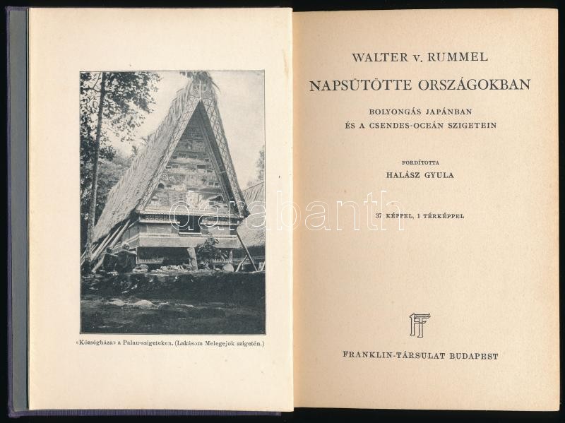 Walter v. Rummel: Napsütötte országokban. Bolyongás Japánban és a Csendes-óceán szigetein. Ford.: Halász Gyula. Világjárók. Utazások és kalandok. Bp., é.n., Franklin. Fekete-fehér képtáblákkal illusztrált. Kiadói kopott aranyozott egészvászon-kötésben.