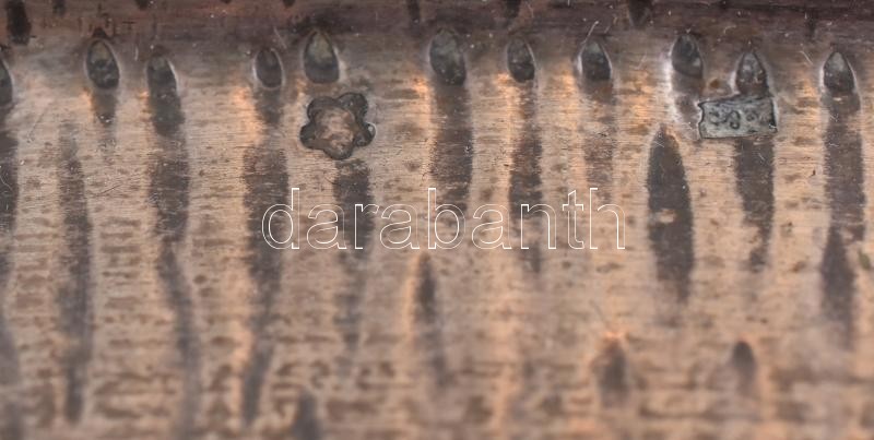 Ezüst (Ag) mattlézott füles tálca, jelzett, nettó: 721g, 38,5x25cm