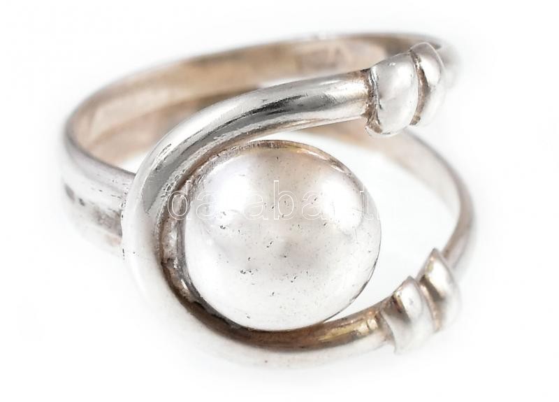 Ezüst(Ag) lencsés gyűrű, jelzett, méret: 57, nettó: 3,44 g