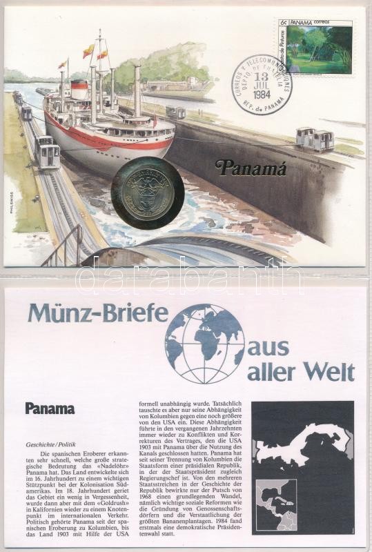 Panama 1983. 5c felbélyegzett borítékban, bélyegzéssel, német nyelvű l... https://www.darabanth.com/en/403-Online-auction/403.0/Numismatics/Envelopes-with-Coins-and-Banknotes~2500004/Panama-1983-5c-felbelyegzett-boritekban-belyegzessel-nemet-nyelvu-leirassal-T1--Panama~II2459238