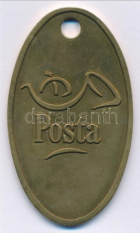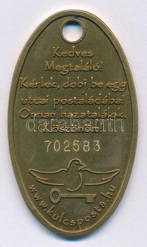 ~2000. "Posta / Kedves Megtaláló! Kérlek, dobj be egy utcai postaládába! Onnan hazatalálok. Köszönöm! - www.kulcsposta.hu" Br kulcstartó, gravírozott sorszámmal (56x32mm) T:1-