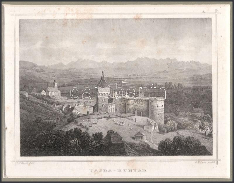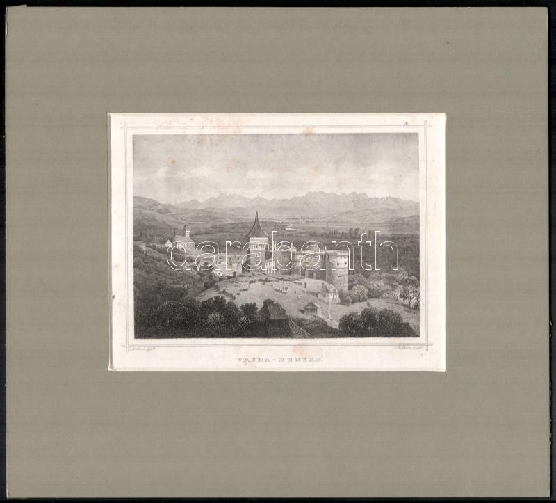 Description: cca 1850 Ludwig Rohbock (1820-1883) Vajdahunyad - Vajda Hunyad acélmetszet / Hunedoara in Transylvania steel-engraving paszpartuban, 12x16 cm Kissé foltos