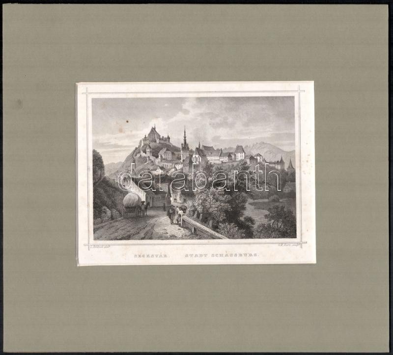 cca 1850 Ludwig Rohbock (1820-1883)Segesvár acélmetszet / Sighisoara in Transylvania steel-engraving paszpartuban, 12x16 cm Kissé foltos