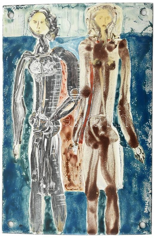 Misch Ádám (1935-1995): Lányok (cím nélkül), 1960-65 körül. Tűzzománc,...