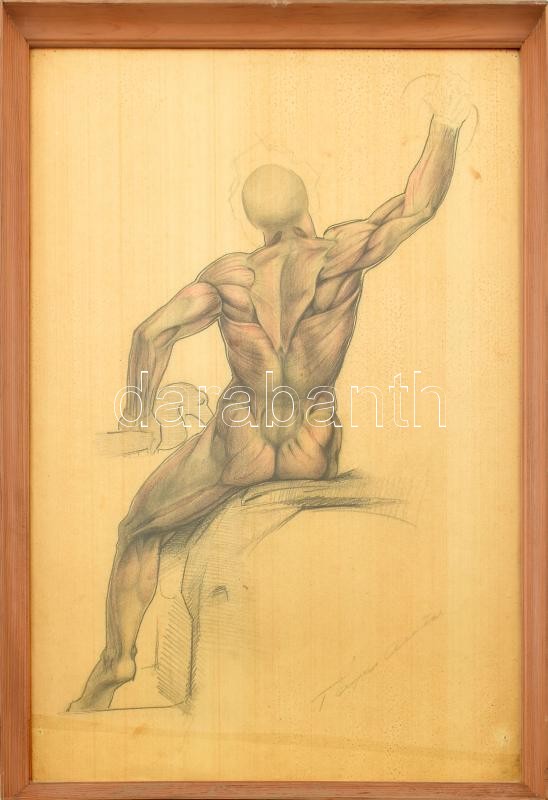 Tápai Antal (1902-1986): Anatómiai tanulmány. Ceruza, papír, jelzett. ...