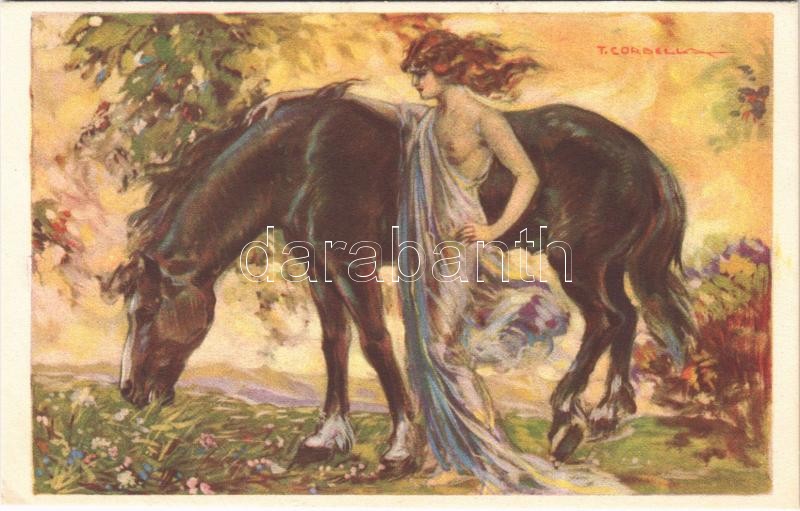 Italian lady art postcard, lady with horse. Anna & Gasparini 439-1. s: T. Corbella (EK)