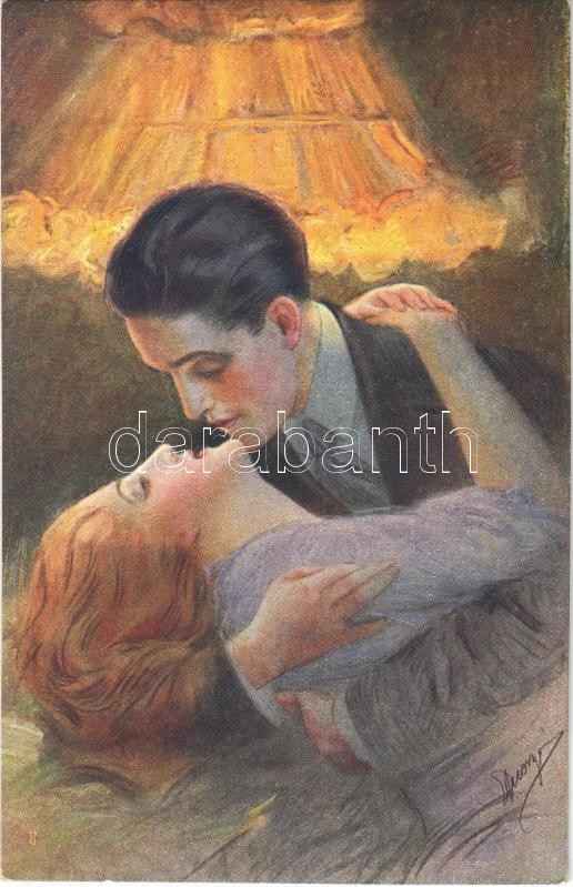 Italian lady art postcard, romantic couple. Proprieta artistica riservata. Selectio Serie 1056-3. artist signed