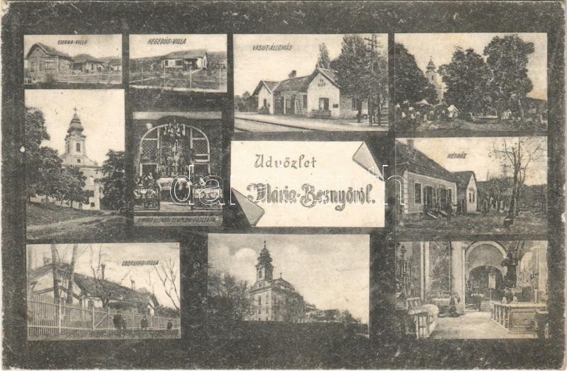 1917 Máriabesnyő (Gödöllő), Vasútállomás, Cserna villa, Hegedűs villa, Hétház, Eberling villa, Kegytemplom, főoltár, búcsújáróhely (EK)
