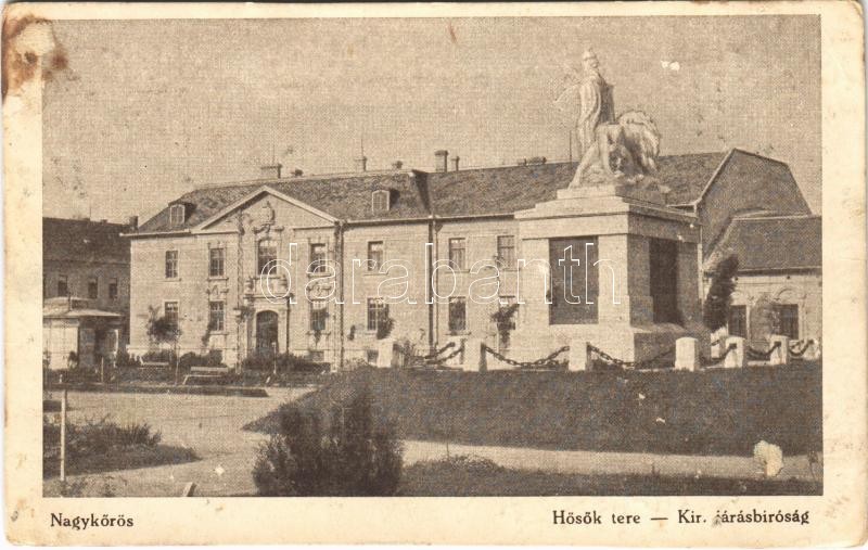 Nagykőrös, Hősök tere, Kir. Járásbíróság, Hősök szobra, emlékmű. Német...
