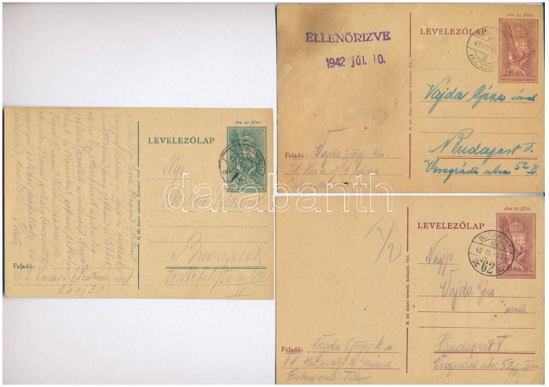 Description: 16 db magyar második világháborús zsidó KMSZ (közérdekű munkaszolgálatos) tábori posta munkatáborból: Weiner István (201/31.) és szülei, valamint Vajda Géza (IX. KMSZ. zlj. 4. sz.) és szülei között 1940-42-ből / 16 WWII Hungarian letters between Jewish labor servicemen and their parents from between 1940-42. Judaica