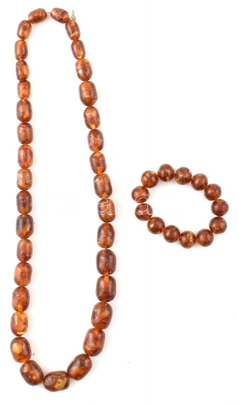 Borostyán őrlemény nyaklánc és karkötő szett. 60 cm