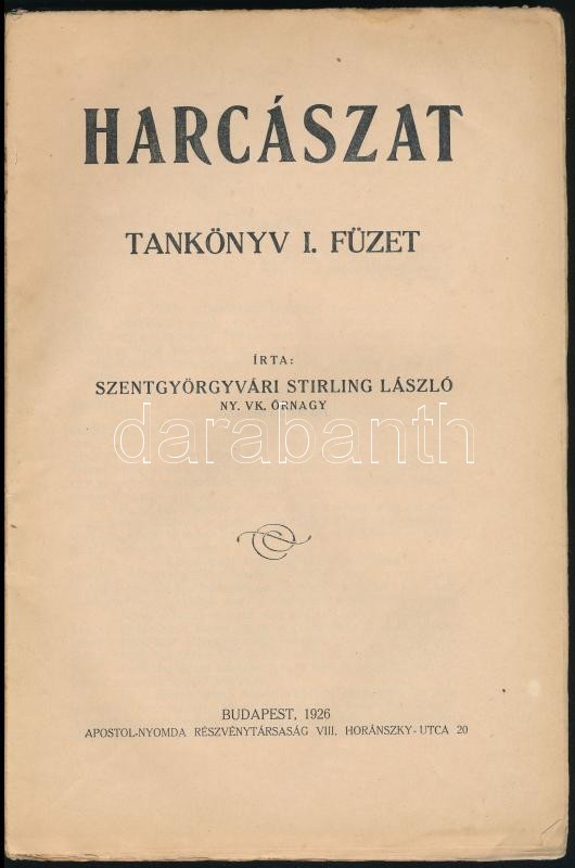 https://www.darabanth.com/en/404-Online-auction/404.0/Books/Books-Military~1000005/Szentgyorgyvari-Stirling-Laszlo-Harcasztat-tankonyv-I-Bp-1925-Apostol-ny-Kiadoi-papirk~II2496097