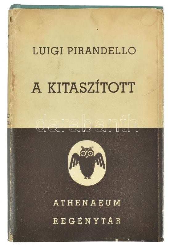 Luigi Pirandello: A kitaszított. Ford.: Déry Tibor. Athenaeum Regénytár. Bp., én., Athenaeum. Kiadói egészvászon-kötés, kiadói foltos, javított, kissé illusztrált szakadt papír védőborítóban.