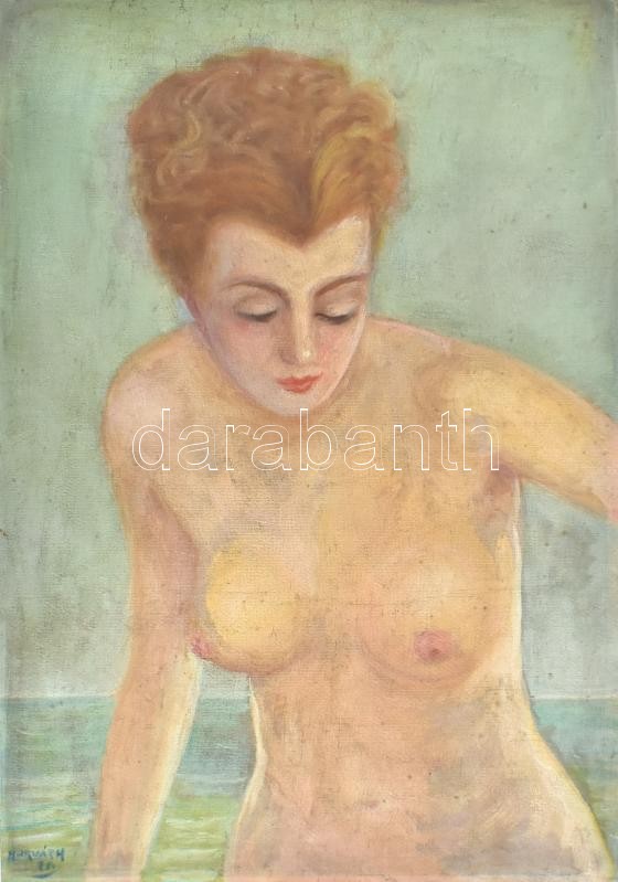 Halasi Horváth István (1904-1994): Női akt. Olaj, vászon, kartonra kasírozva. Jelzett. Vetemedésekkel. 70x50 cm