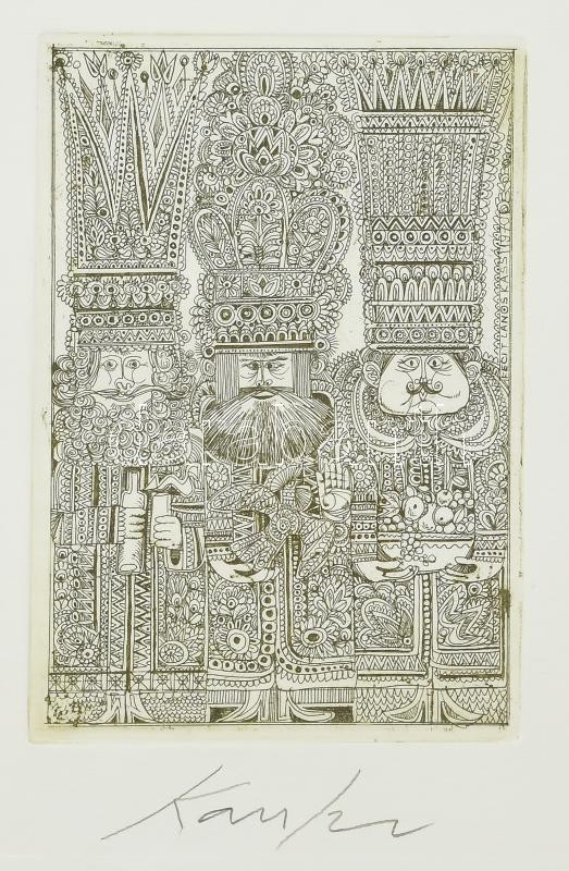 Kass János (1927-2010): Háromkirályok. Rézkarc, papír, jelzett, üvegez...