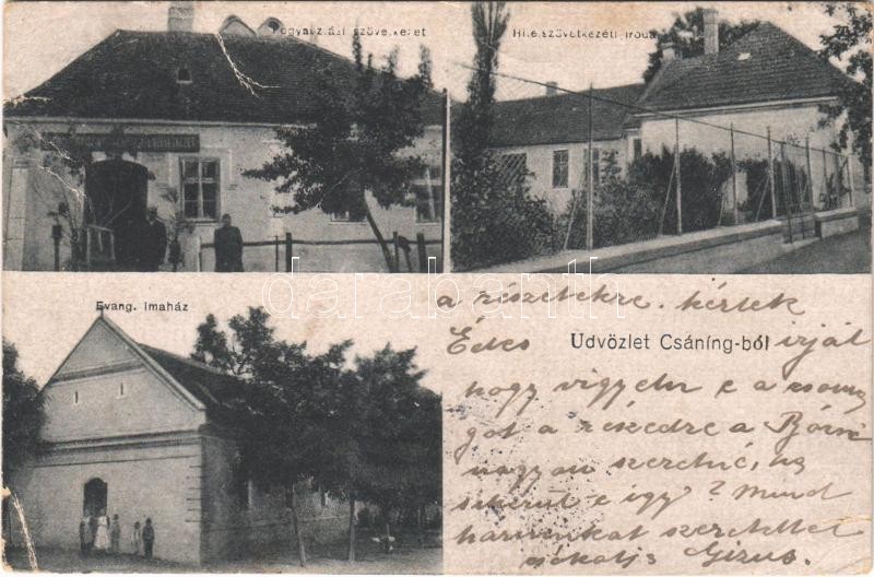 1925 Csánig, Evangélikus imaház, Hitelszövetkezet irodája, Fogyasztási...