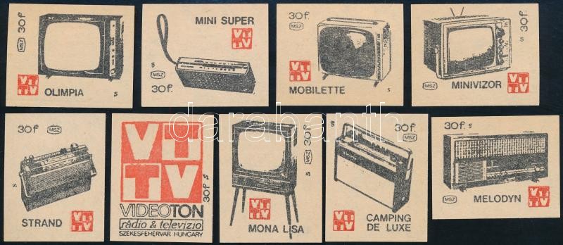 1968 Videoton rádió és televízió gyufacímkék, 9 db-os sorozat