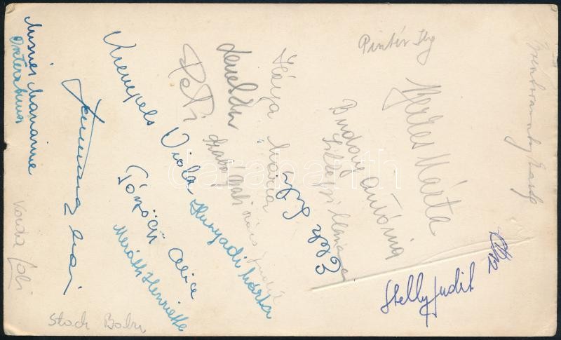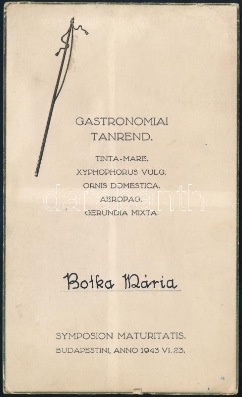 1943 Bp., Gasztronómiai tanrend - menükártya, hátoldalán aláírásokkal