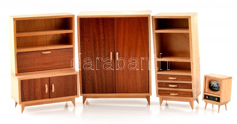 Retró szocreál bababútor. Fa, kopott. m: 9 és 25 cm között.
