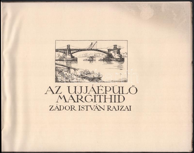 1947 Zádor István (1882-1963): Az ujjáépülő Margithíd. Bp.,1947, Posner, 6 p. + 14 t. Zádor István 14 rajza. Kiadói papírkötés.