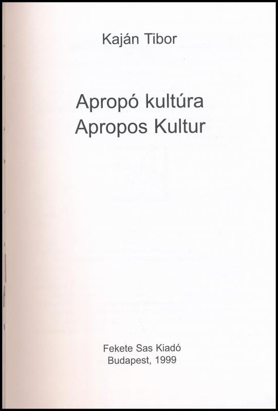 Kaján Tibor: Apropó kultúra. Apropos Kultura. Bp., 1999., Fekete Sas. ...