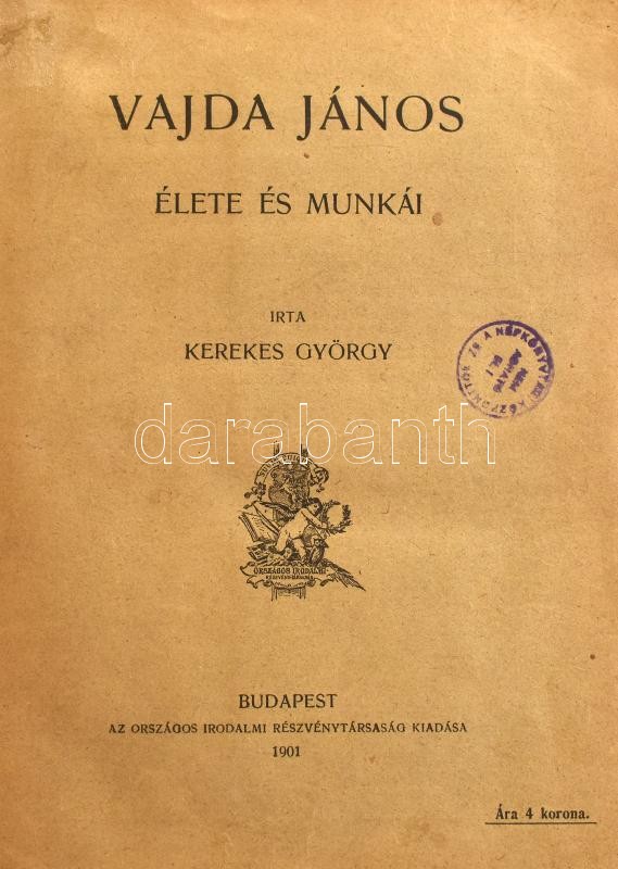 Kerekes György: Vajda János élete és munkái. Bp., 1901, Országos Iroda... https://www.darabanth.com/en/405-Online-auction/405.0/Books/Books-Other-rarities~2000019/Kerekes-Gyorgy-Vajda-Janos-elete-es-munkai-Bp-1901-Orszagos-Irodalmi-Rt-236plus1-p-Konyv~II2502399