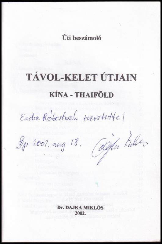 Dr. Dajka Miklós: Távol-Kelet útjain. Kína - Thaiföld. 2002, Dr. Dajka Miklós. DEDIKÁLT! Kiadói papírkötés, kissé kopottas állapotban.