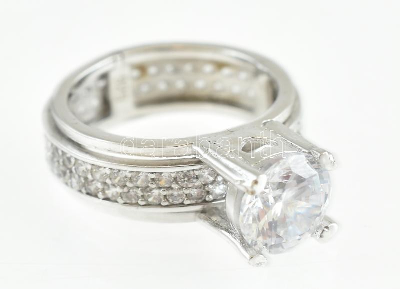 Ezüst(Ag) kövekkel gazdagon kirakott, forgatható közepű gyűrű, jelzett...