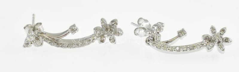 Ezüst(Ag) virágos, köves fülbevalópár, jelzett, h: 3,5 cm, bruttó: 5,5...