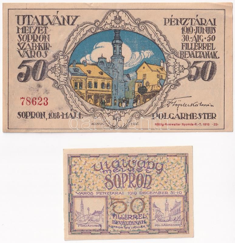 https://www.darabanth.com/en/405-Online-auction/405.0/Numismatics/Emergency-Coins-and-Notes~1500006/Sopron-1918-majus-1-50f-utalvany-plus-Sopron-1919-50f-utalvany-TII-I-Adamo-SOP-51~II2498747