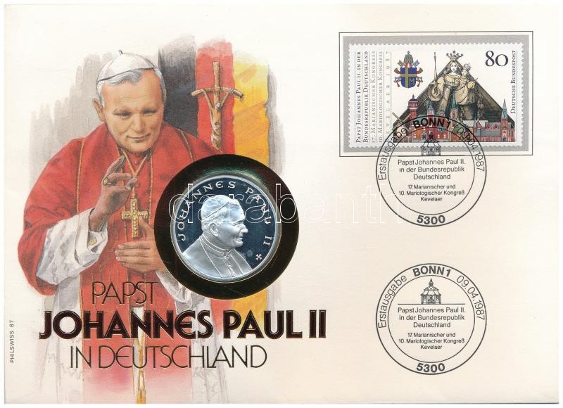 Német Szövetségi Köztársaság 1987. "II. János Pál látogatása"... https://www.darabanth.com/en/405-Online-auction/405.0/Numismatics/Envelopes-with-Coins-and-Banknotes~1500004/Nemet-Szovetsegi-Koztarsasag-1987-II-Janos-Pal-latogatasa-jelzett-Ag-emlekerem-ermC3~II2499405