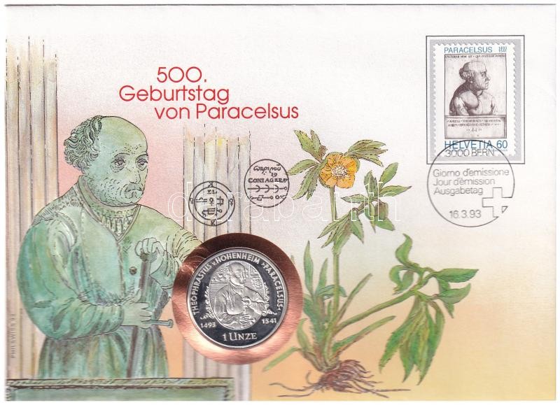 Svájc 1993. "Paracelsus születésének 500. évfordulója" jelze... https://www.darabanth.com/en/405-Online-auction/405.0/Numismatics/Envelopes-with-Coins-and-Banknotes~1500004/Svajc-1993-Paracelsus-szuletesenek-500-evforduloja-jelzett-Ag-emlekerem-ermes-borite~II2500494