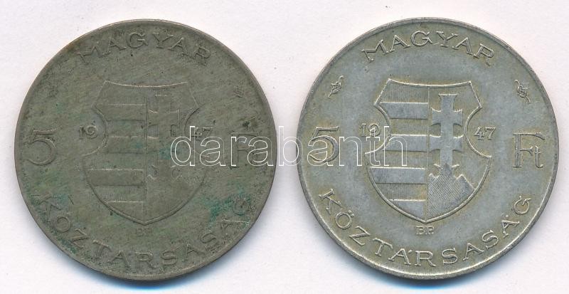 1947. 5Ft Ag "Kossuth" (2x) T:2-,3 patina