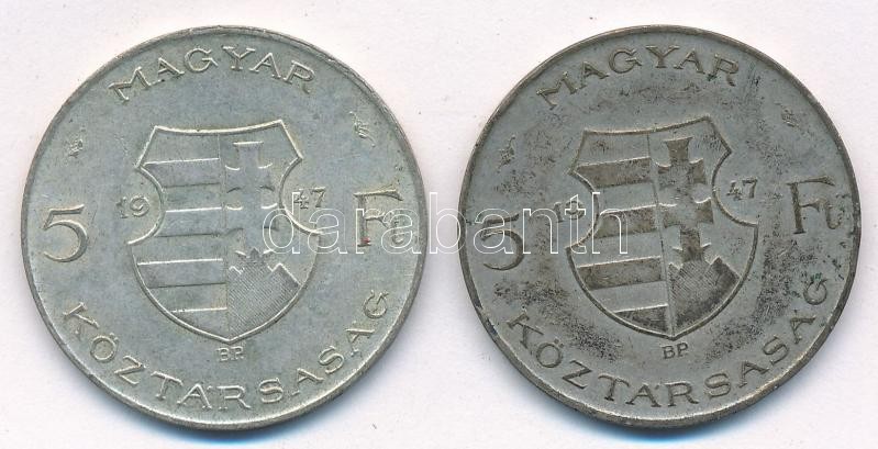 1947. 5Ft Ag "Kossuth" (2x) T:2-,3 patina