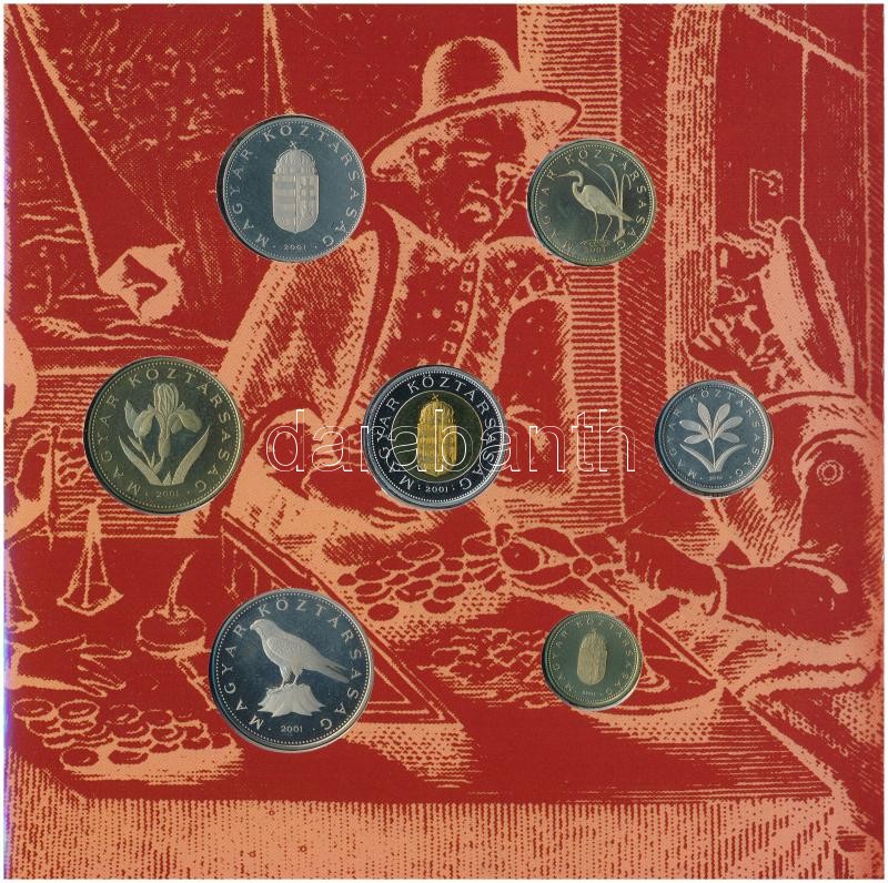https://www.darabanth.com/en/405-Online-auction/405.0/Numismatics/Hungarian-coins-and-coins-with-Hungarian-mint-marks~1500008/2001-1Ft-100Ft-7xklf-forgalmi-sor-szettben-Magyarorszag-penzermei-sorozat-TPP-patina-Ada~II2504894