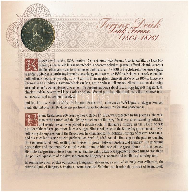 https://www.darabanth.com/en/405-Online-auction/405.0/Numismatics/Hungarian-coins-and-coins-with-Hungarian-mint-marks~1500008/2003-1Ft-100Ft-7xklf-forgalmi-sor-szettben-plus-20Ft-Deak-Ferenc-forgalmi-emlekerme-TBU--Adam~II2502218