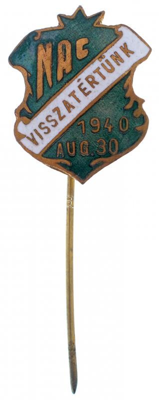 1940. "NAC (Nagyváradi Atlétikai Club) - Visszatértünk 1940. augusztus 30." a második bécsi döntéssel Magyarországhoz visszakerülő Nagyvárad sportklubjának zománcozott Br jelvénye (21x17mm) T:1-,2