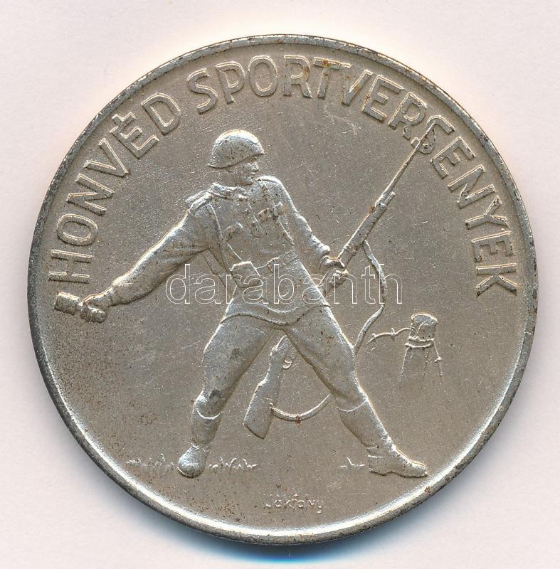 ~1950. "Honvéd Sportversenyek" ezüstözött Br emlékérem, Rákosi-címerrel. Szign.: Jákfalvy (50mm) T:2