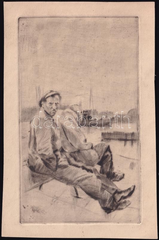 Dombrovszky László (1894-1984): Pihenő munkások. Rézkarc, papír, jelzé...