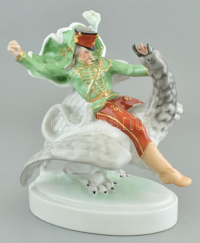 Herendi János vitéz a griffmadáron, kézzel festett, jelzett, apró kopásnyomokkal, m:20,5 cm, h:17 cm