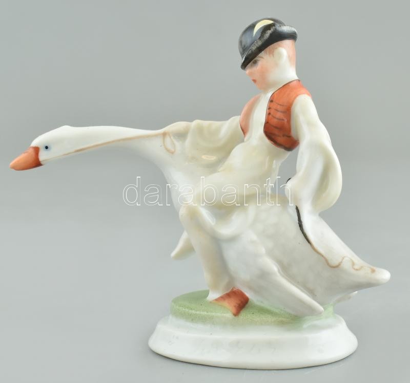 Herendi porcelán Ludas Matyi, gazdagon díszített magyaros mintával. Kézzel festett, jelzett, apró kopásnyomokkal, m: 8 cm