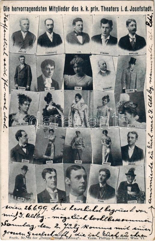 1899 (Vorläufer) Wien, Vienna, Bécs VIII. Die hervorragendsten Mitglieder des k.k. priv. Theaters i. d. Josefstadt / Members of the theatre (Rb)