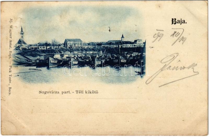 1899 (Vorläufer) Baja, Sugovica part, téli kikötő, uszályok